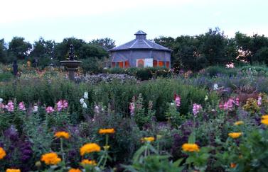 | More than 30 flower beds are neatly arranged into theme gardens that delight visitors throughout the summer. Each garden plot is a history lesson that explores the utilization of plants spanning generations. Whimsical and primitive accents will amuse you, while informative signs are posted to help guide you through the gardens. |
